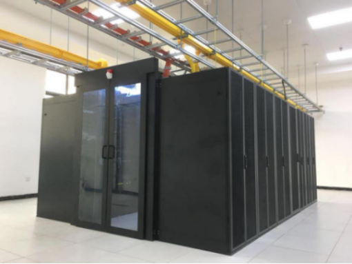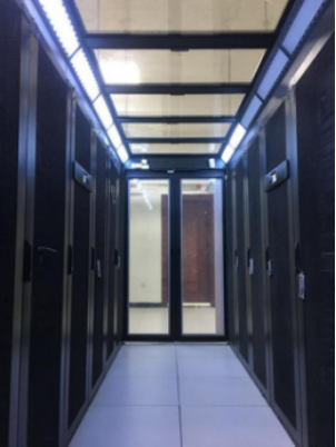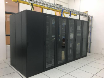项目整体采用双排18机柜整体机房系统1套,单排6机柜整体机房系统5套。