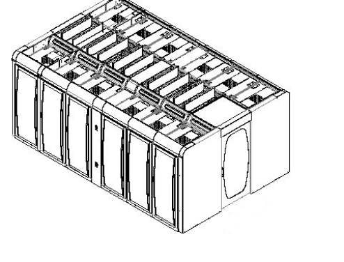 通道内顶部采用活动天窗,可以通过DC12V电源自动开启,并与消防联动。正常运行状态下,电磁机构非带电运行,节省电力开支,在消防状态下触发开启时,天窗电磁机构得电开启天窗;天窗为金属型材和防火玻璃组合,采用翻板式设计,最大限度满载通道内部的净高要求,同时满足机房净高不足的运用场合,比传统模块化机柜组合的运用场景低,适应的建筑环境更宽泛。不接受电磁铁式设计,不接受运行状态长期耗电的设计方案。